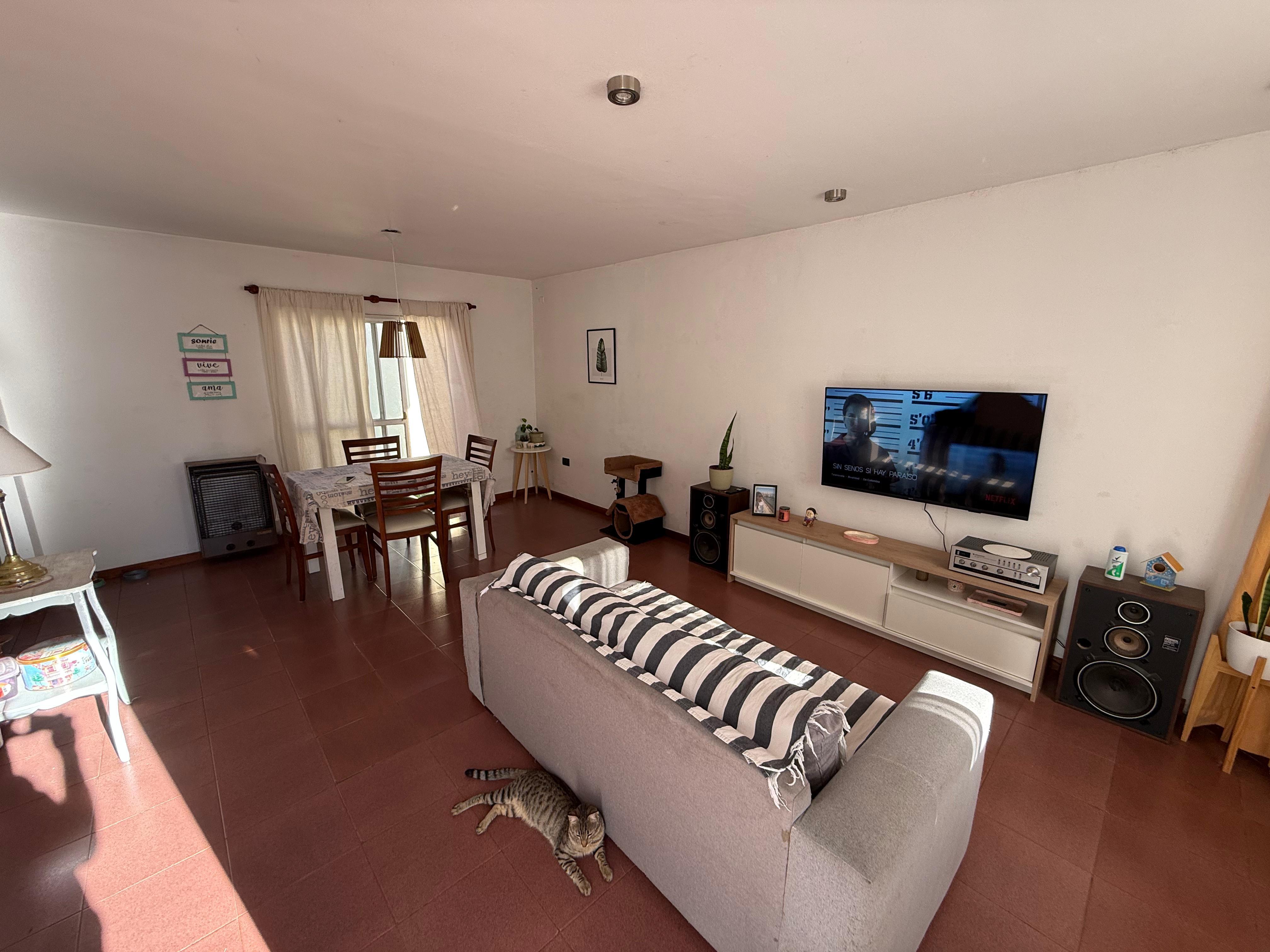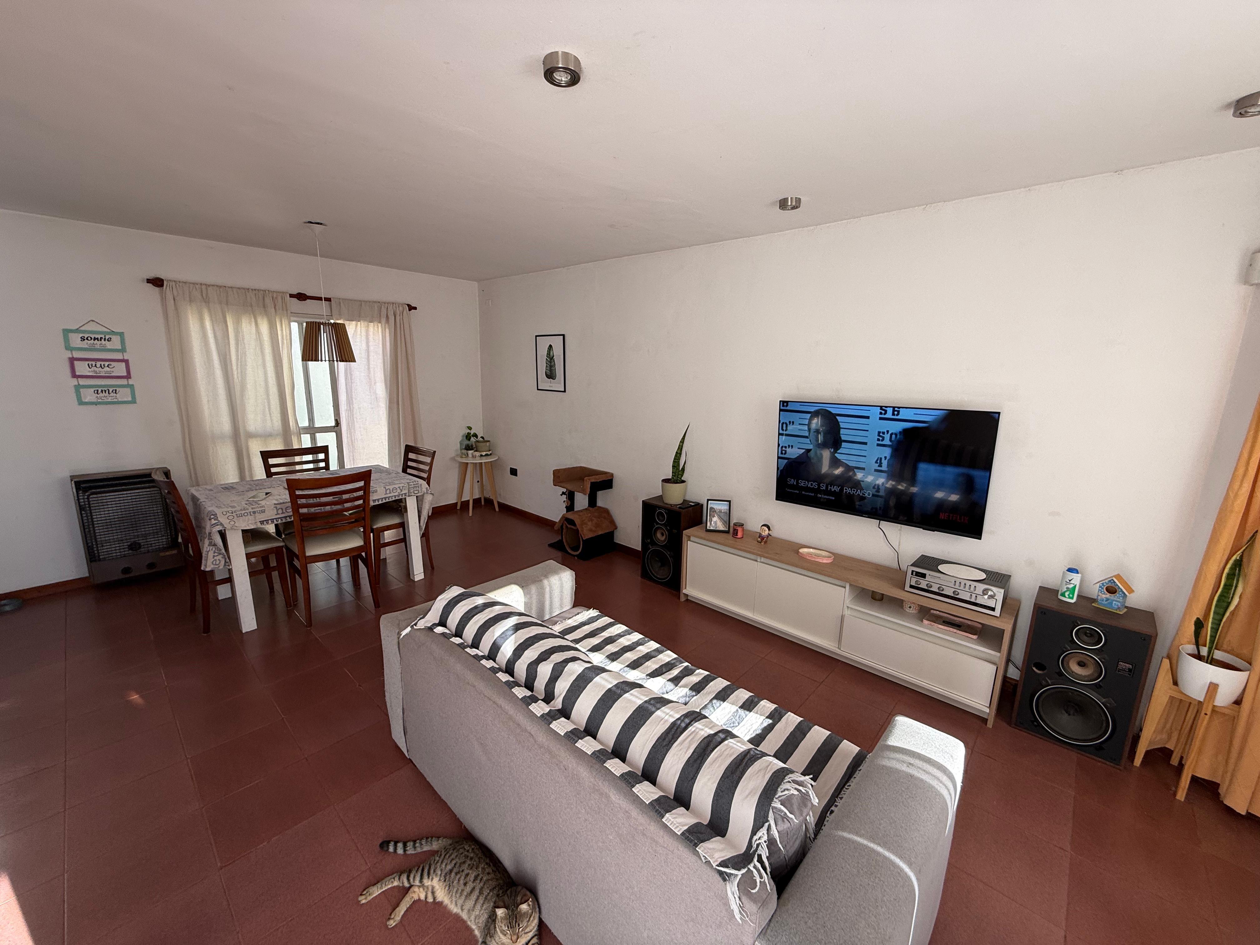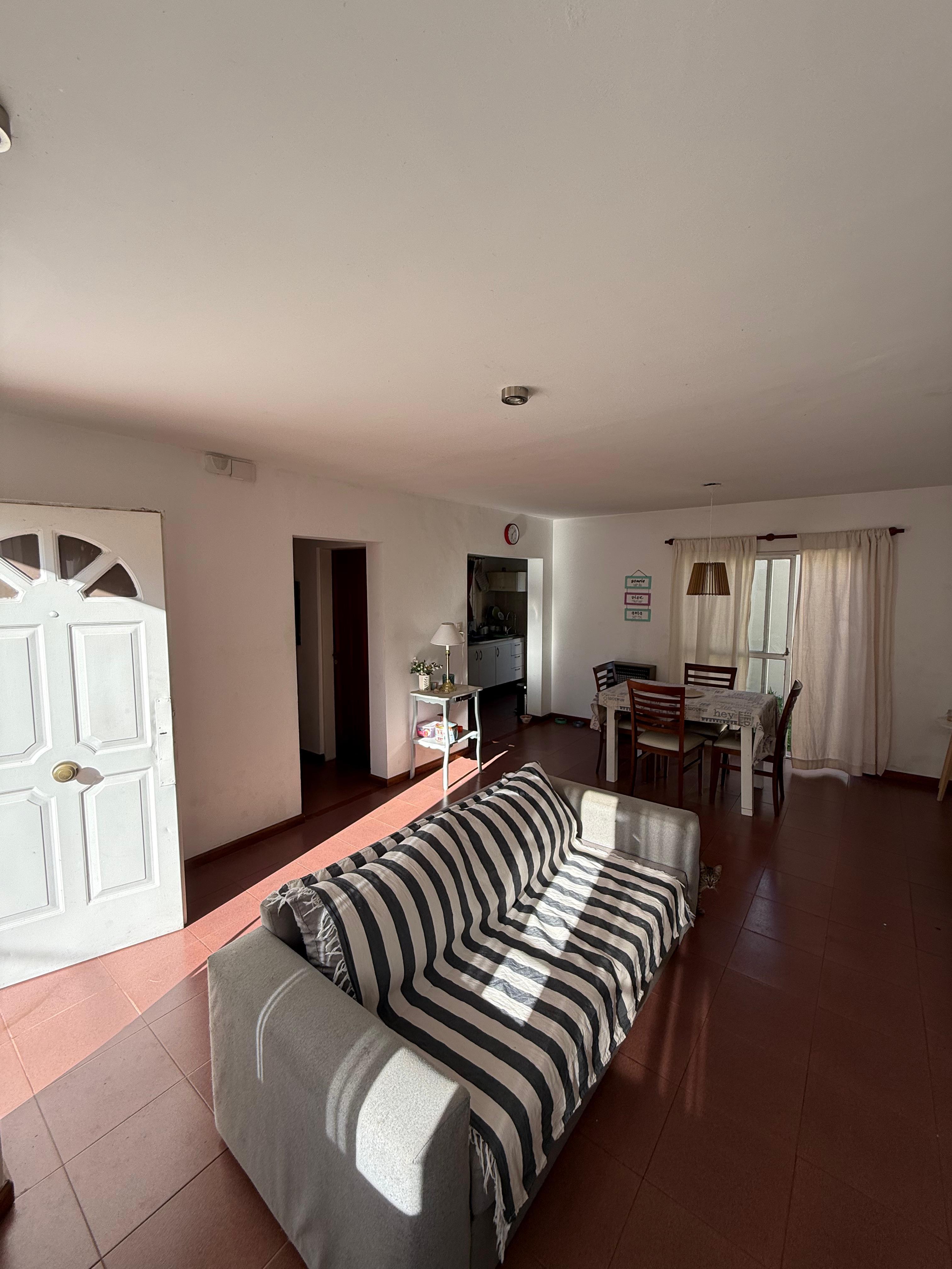 Hermoso dúplex de 2 dormitorios súper luminoso. Con gran patio, galería y espacio para 2 autos. Cochera cubierta. Quincho. Distribuido en dos plantas. Planta Baja: Cocina semintegrada Liviang Comedor Toilette Baulera Planta alta: 2 dormitorios con grandes placares 1 baño completo amplio. Hall distribuidor con gran ventanal. Ideal para una familia con grandes espacios externos. Amplio jardín y patio.