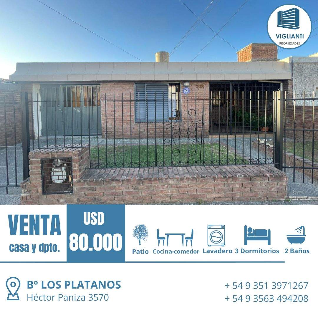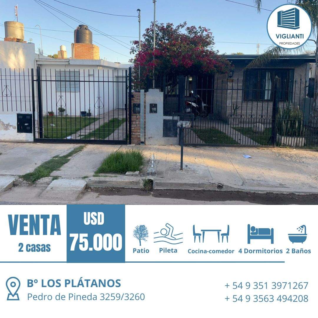 VENTA 2 CASAS- B Los Plátanos (a 2 cuadras de Av. Maestro Vidal y Av. Fuerza Aérea Argentina)