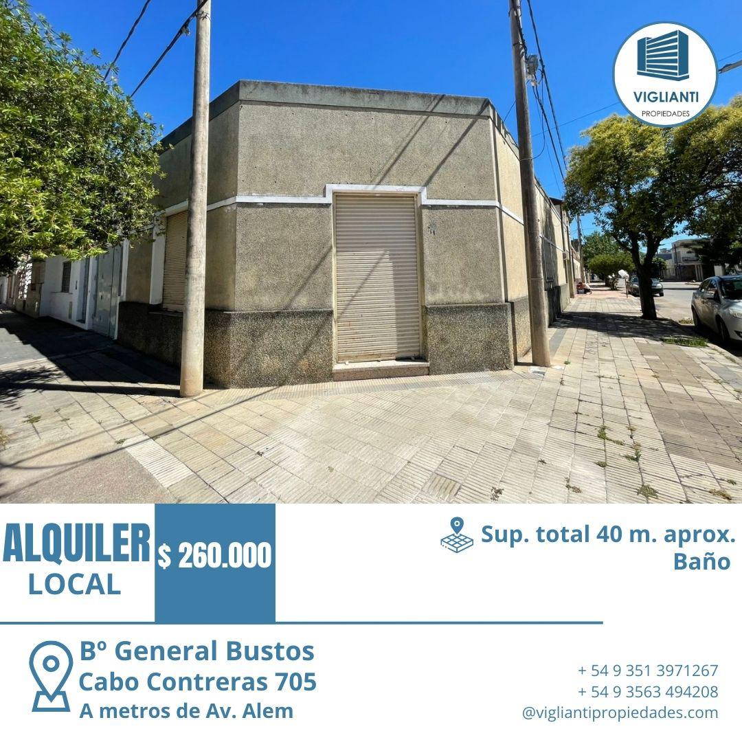Alquiler local comercial (esquina)- B Gral Bustos (a mtros de Av. Alem)