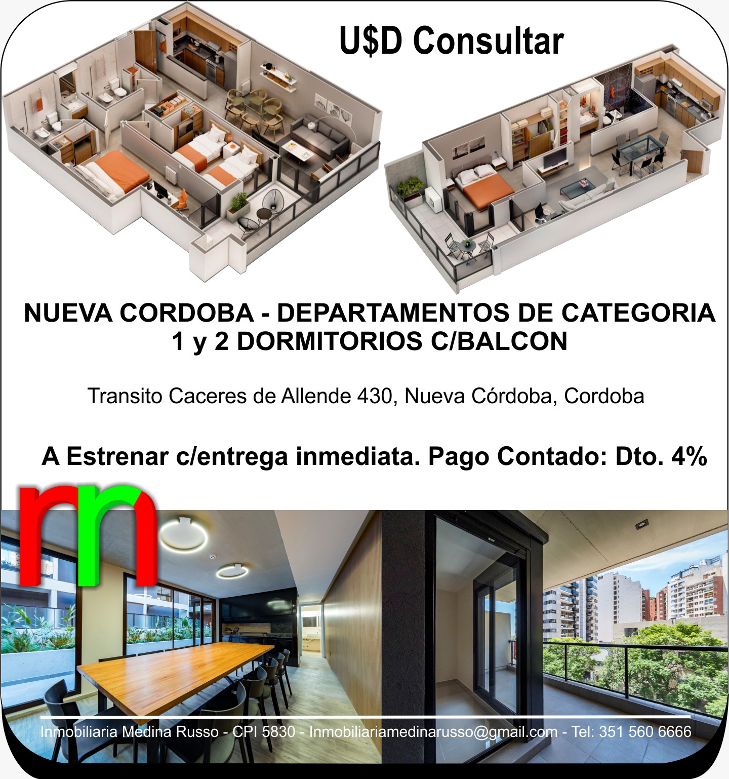 NUEVA CORDOBA - DEPARTAMENTO de 1 y 2 DORMITORIOS CBALCON